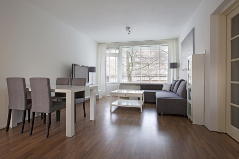 Through the communal entrance, the staircase leads you to the first floor, where you enter a generous hallway that provides access to all rooms. At the front of the apartment is the bright living room, where you can enjoy the beautiful, expansive view over the Amstel every single day. This view continues onto the adjoining southeast-facing balcony—an ideal spot for a morning coffee in the sunshine or a glass of wine at the end of the day.